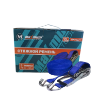 Ремень стяжной для груза 3 тонны 10 метров длиной от бренда "MAXIMUM quality tools" оснащен храповым механизмом, который позволяет использовать весь ресурс изделия при закреплении груза. Данная модель оснащена регулировкой длины. Специальная полиэстеровая лента 75 мм шириной имеет двойную прошивку, которая повышает прочность и долговечность изделия. Храповик стяжного ремня для крепления груза и специальные крюки выполнены из оцинкованной стали.